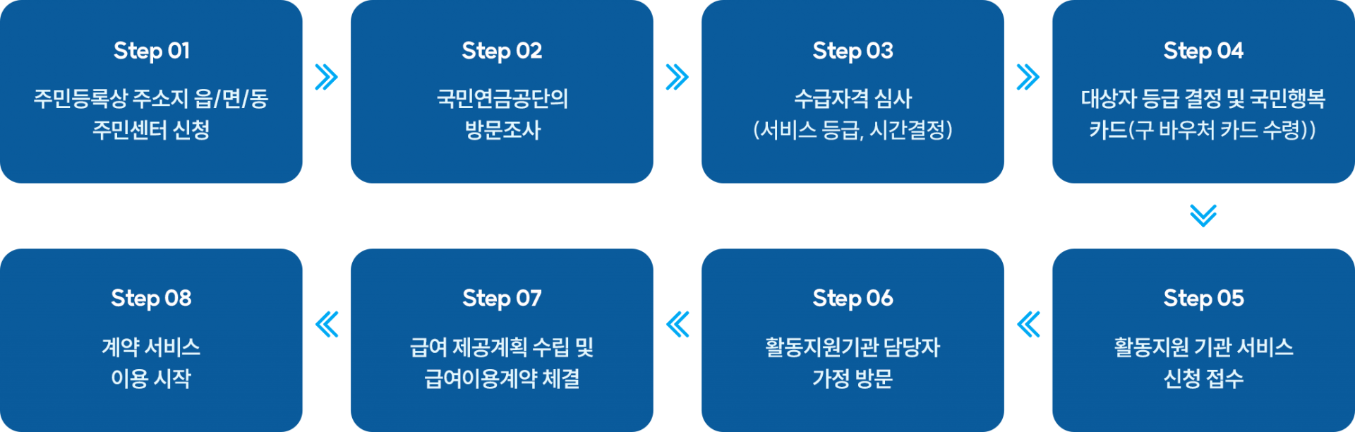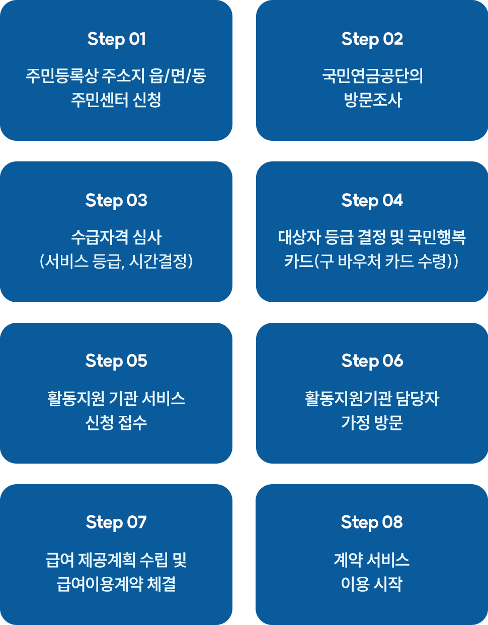기관 담당자 가정 방문 → 급여 제공계획 수립 및 이용 계약 서비스 이용 시작